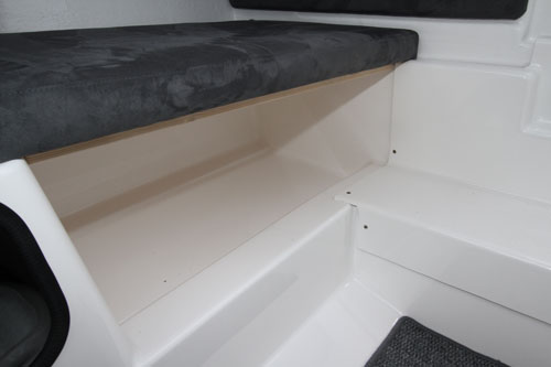 Hytissä on kaksi ovea, etu- ja takakannelle, nämä tekee liikkumisen helpoksi kun tulet yksin laiturille. Takakannelle pääset ison liukuoven kautta. Hytissä on kaksi pulpettia, runsaat säilytystilat, istumapaikat merinäköalalla kuudelle, iso kattoluukku, yöpymismahdollisuus kahdelle lisävarusteena.. Etu ja takakansi ovat sadevesi-itsetyhjentyvät. Perässä on akkutila, ankkuriboxi ja uimaporras. Etukannella on paljon tilaa ja sitähän tarvitaan kun olet porukalla kalastamassa tai kuljetat tavaraa mökille. TG-5.9X on perinteisesti käsinlaminoimalla valmistettu vene.